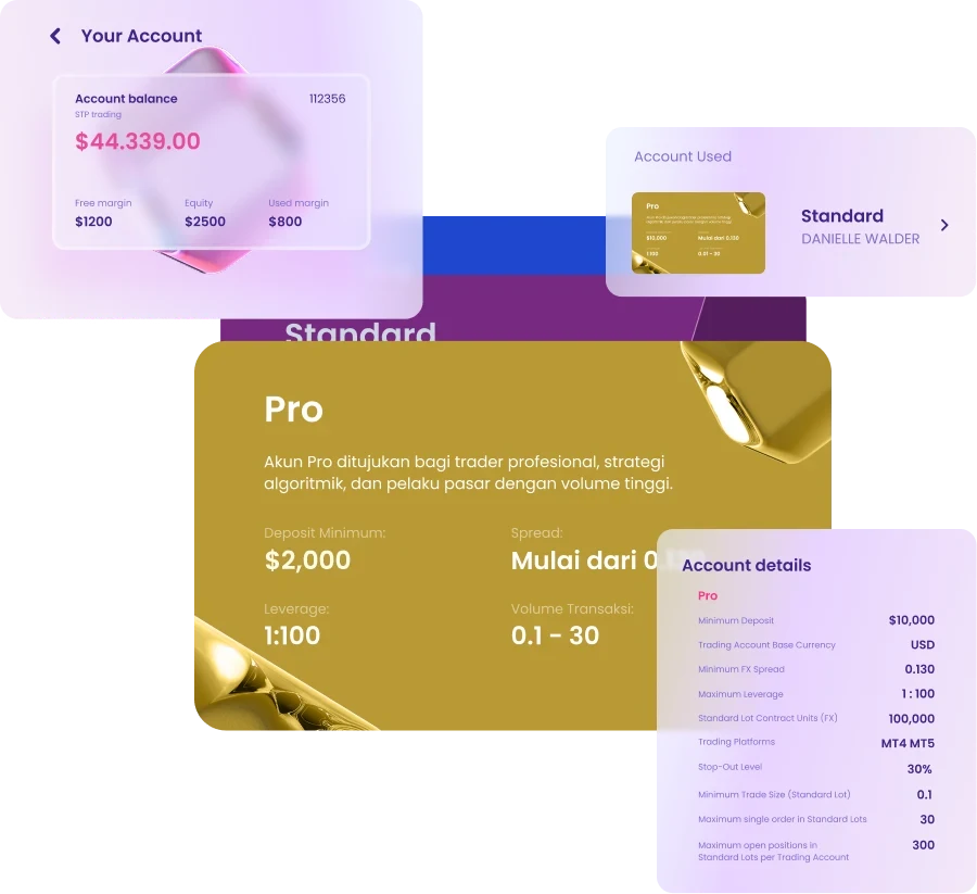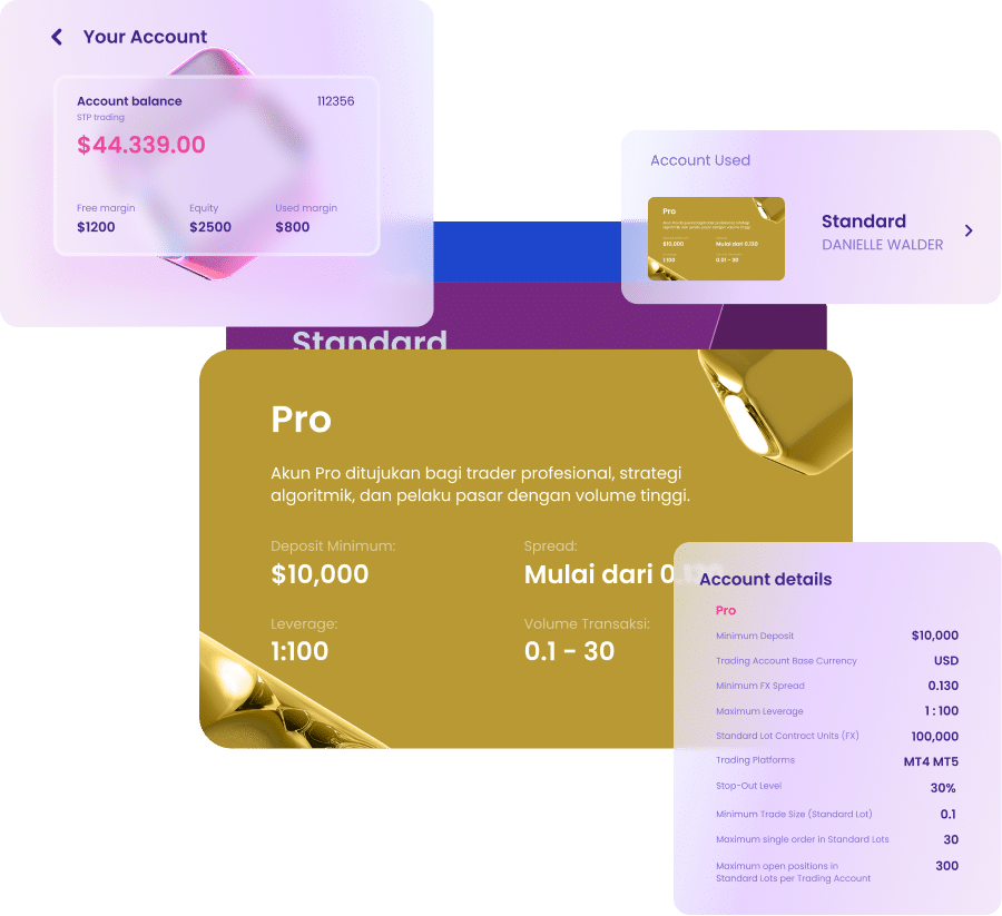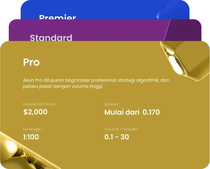 Akun Pro dioptimalkan untuk trader tingkat lanjut, memberikan akses ke pasar Komoditas Gold, Silver, dan Crude Oil.