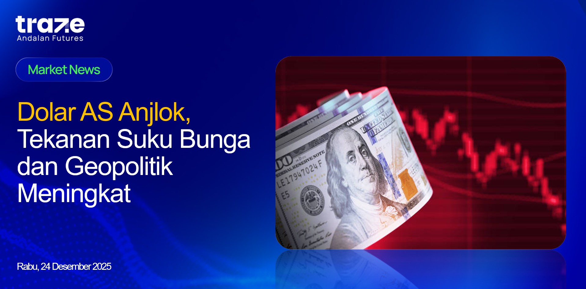 Tekanan tambahan datang dari aliran dana ke logam mulia sebagai aset aman, meningkatnya risiko geopolitik, serta penguatan yen setelah Bank of Japan menaikkan suku bunga dan membuka peluang intervensi. Perbedaan kebijakan global dan pola pelemahan akhir tahun semakin membebani mata uang AS. Sepanjang tahun ini, dolar berpotensi mencatat kinerja tahunan terburuk dalam lebih dari dua dekade akibat gejolak kebijakan perdagangan dan kekhawatiran terhadap independensi bank sentral.