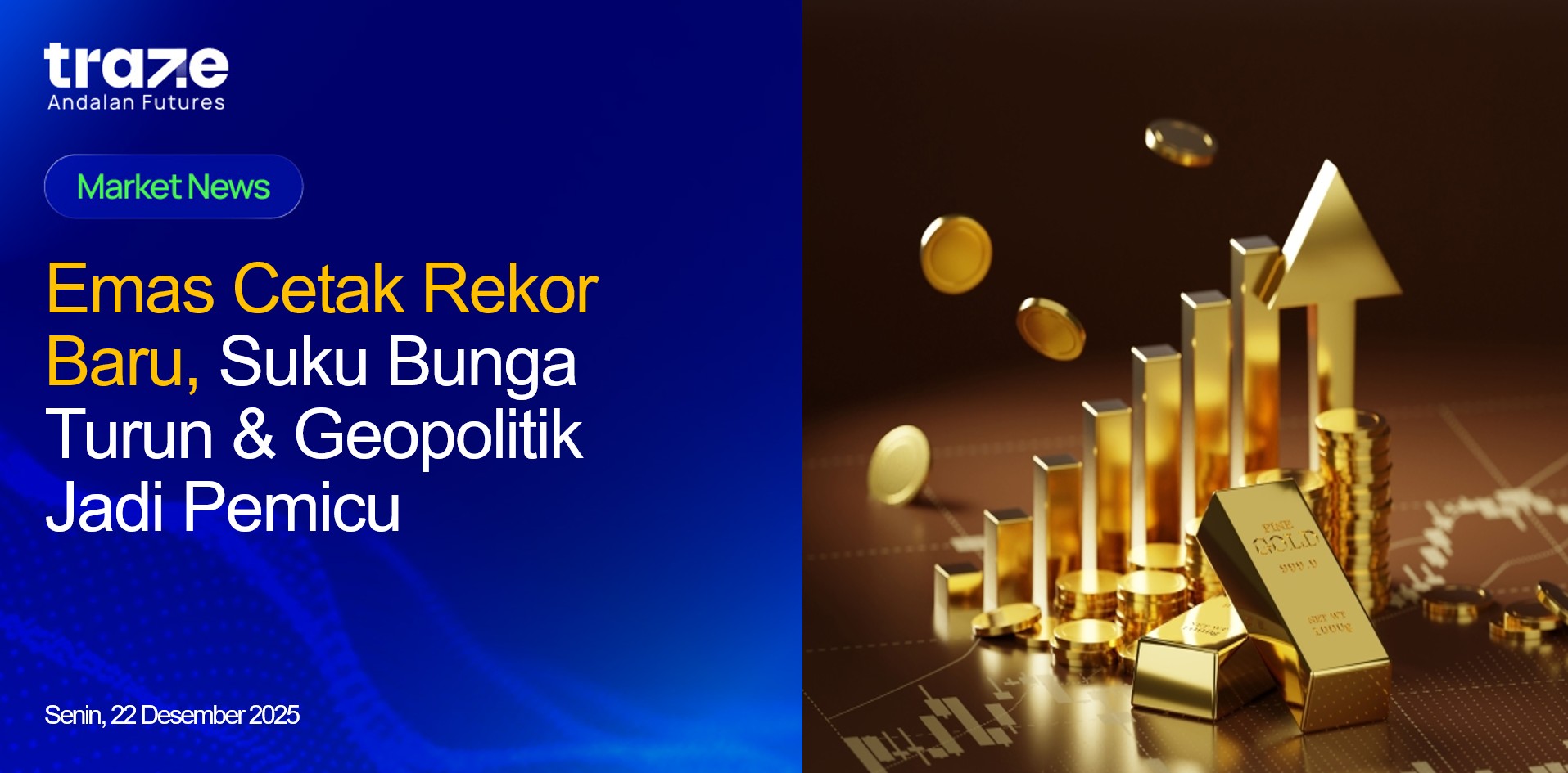 Harga emas mencetak rekor tertinggi baru di atas USD 4.380 per ons, didorong oleh ekspektasi penurunan suku bunga Amerika Serikat dan meningkatnya ketegangan geopolitik global. Data inflasi AS yang lebih lemah dari perkiraan memperkuat keyakinan pasar bahwa Federal Reserve berpotensi memangkas suku bunga dua kali lagi tahun depan, sehingga menekan dolar AS dan meningkatkan daya tarik emas sebagai aset lindung nilai.