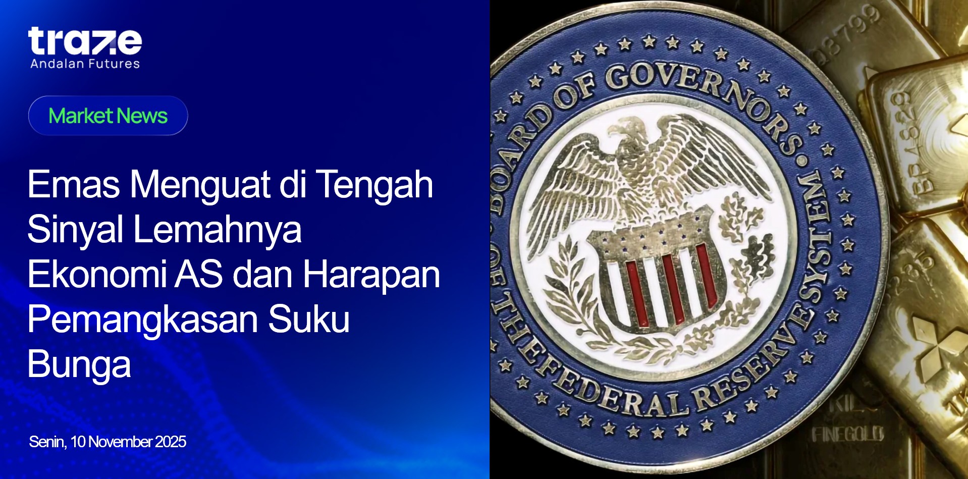 Harga emas bergerak positif di kisaran $4.020 pada sesi Asia awal Senin (10/11), didorong oleh ekspektasi pemangkasan suku bunga AS setelah data ketenagakerjaan menunjukkan tanda-tanda pelemahan. Laporan Challenger Job Cuts mengungkapkan pemutusan hubungan kerja lebih dari 150.000 pada Oktober—kenaikan tertinggi dalam lebih dari dua dekade—menandakan pendinginan pasar tenaga kerja yang dapat mendorong langkah pelonggaran kebijakan The Fed.