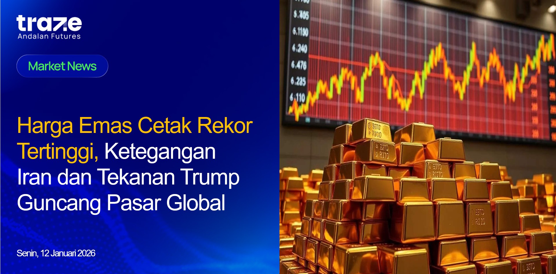 Harga emas melonjak lebih dari 1% hingga menembus level USD 4.570 per ons pada awal pekan (12/01), mencetak rekor tertinggi sepanjang masa. Kenaikan ini didorong meningkatnya ketegangan geopolitik global serta kekhawatiran pasar terhadap independensi Federal Reserve, faktor yang memperkuat daya tarik emas sebagai aset lindung nilai di tengah ketidakpastian.