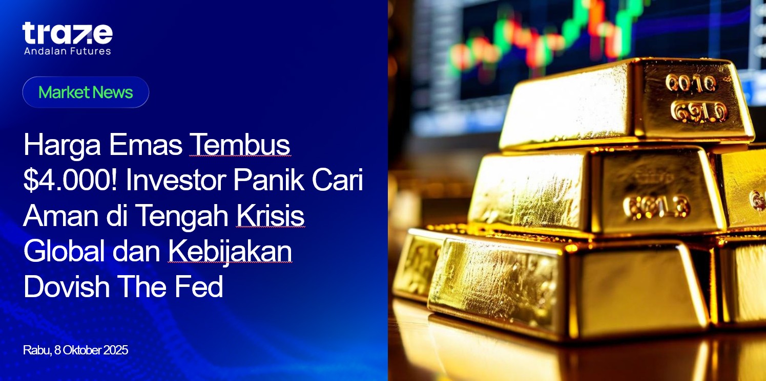 Harga emas melonjak menembus level psikologis $4.000 per ons pada Rabu (08/10), mencatat rekor baru seiring meningkatnya permintaan aset aman di tengah kekhawatiran ekonomi global. Ketidakpastian makin dalam setelah penutupan pemerintahan AS memasuki minggu kedua, menunda rilis data ekonomi penting yang menjadi acuan kondisi ekonomi negara tersebut.