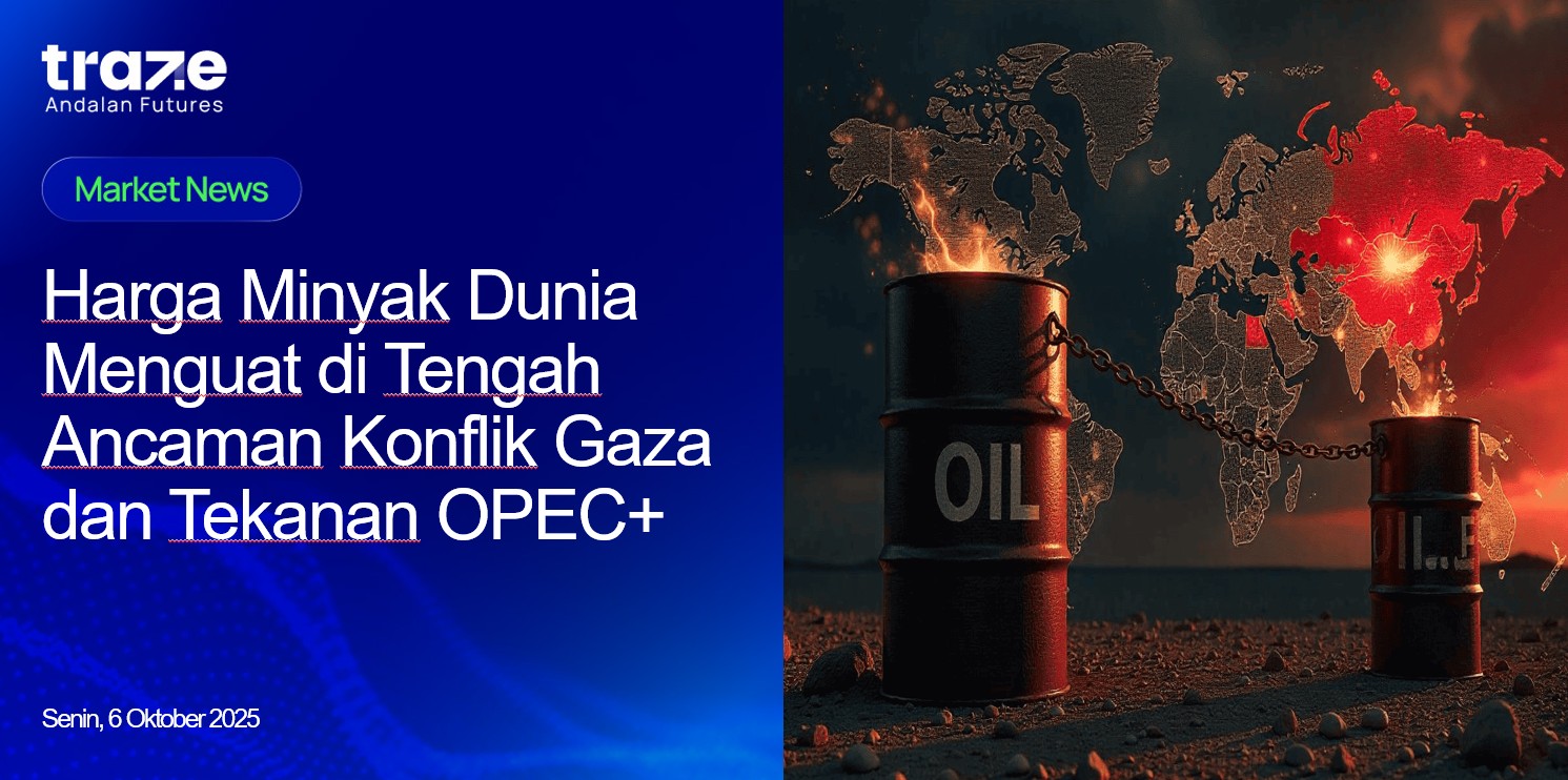 Harga minyak mentah WTI naik 0,7% dan ditutup di level $60,90 per barel, setelah empat hari berturut-turut mengalami penurunan tajam. Kenaikan tipis ini terjadi di tengah sentimen negatif yang membuat harga minyak tetap mencatat penurunan mingguan sekitar 7%. Sentimen pasar membaik setelah Presiden AS Donald Trump memperingatkan konsekuensi serius jika Hamas menolak rencana perdamaian Gaza, sehingga perhatian investor sempat beralih dari keputusan penting OPEC+ terkait pasokan minyak global.