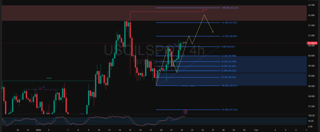 Harga minyak WTI bergerak naik mendekati area $61 per barel pada Kamis (22/01), melanjutkan penguatan untuk sesi keempat berturut-turut. Kenaikan ini didorong meredanya ketegangan geopolitik setelah Presiden AS Donald Trump menunda penerapan tarif terhadap Eropa dan menegaskan tidak akan menggunakan kekuatan militer, sehingga risiko penurunan permintaan energi dinilai berkurang.