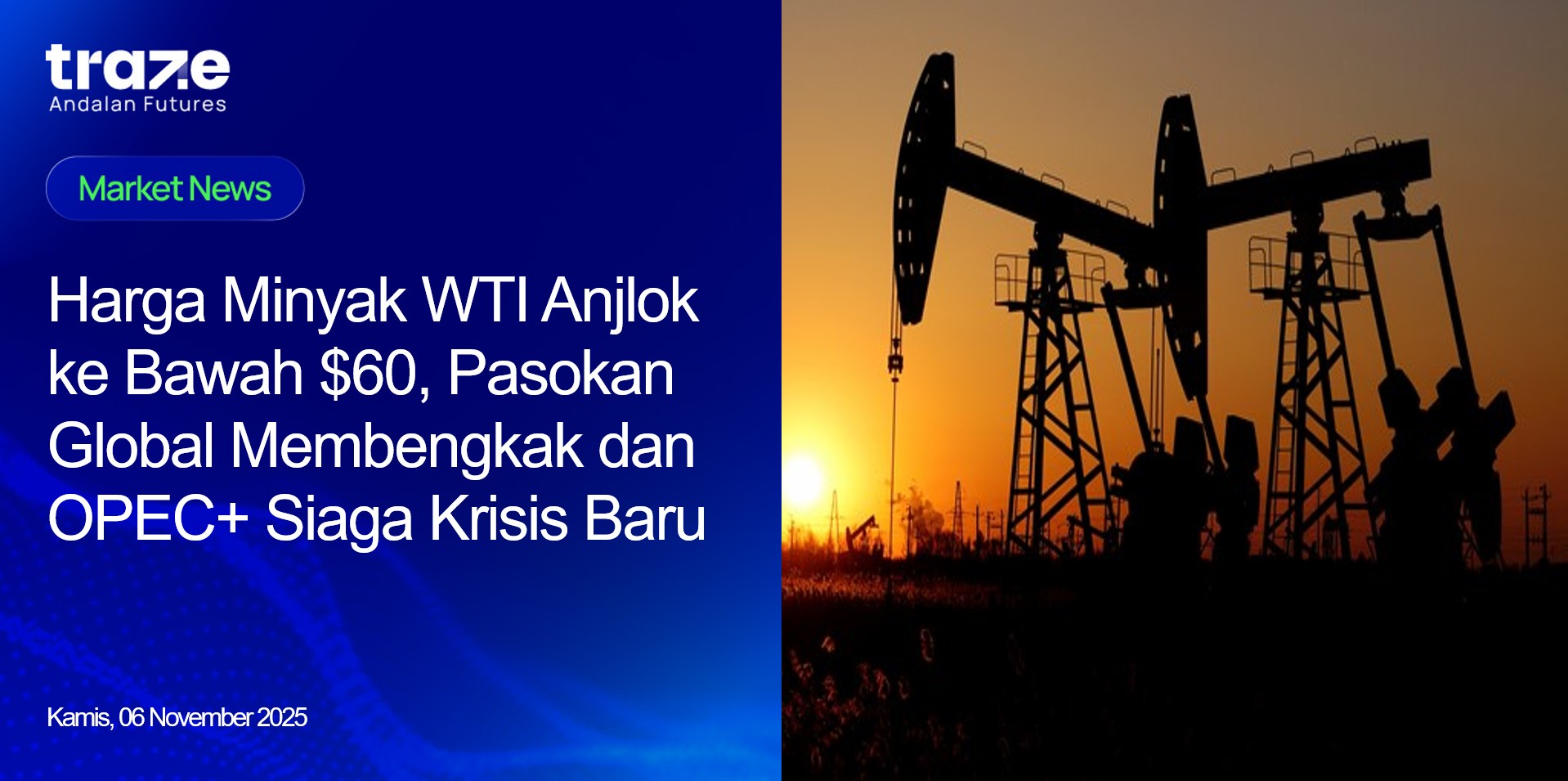Harga minyak mentah WTI kembali melemah, bertahan di bawah level $60 per barel pada Kamis (06/11) setelah mengalami penurunan dua hari berturut-turut yang membawa harga ke posisi terendah dalam dua minggu. Penurunan ini terjadi karena data pemerintah menunjukkan lonjakan stok minyak mentah AS lebih dari 5 juta barel dalam sepekan, kenaikan terbesar sejak Juli. Sementara itu, persediaan bensin AS turun hampir 5 juta barel hingga mencapai level terendah dalam tiga tahun terakhir.