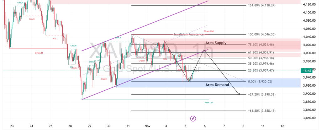 Jika dorongan beli berlanjut, emas berpotensi naik menuju $4.000–$4.020 per ons, area yang berfungsi sebagai zona penawaran (supply zone). Namun, area ini bisa menjadi titik balik, karena tekanan jual diperkirakan kembali muncul di sana. Selama harga belum menembus batas tersebut, tren jangka pendek masih cenderung melemah, dengan risiko turun kembali ke $3.900 atau bahkan $3.880.
