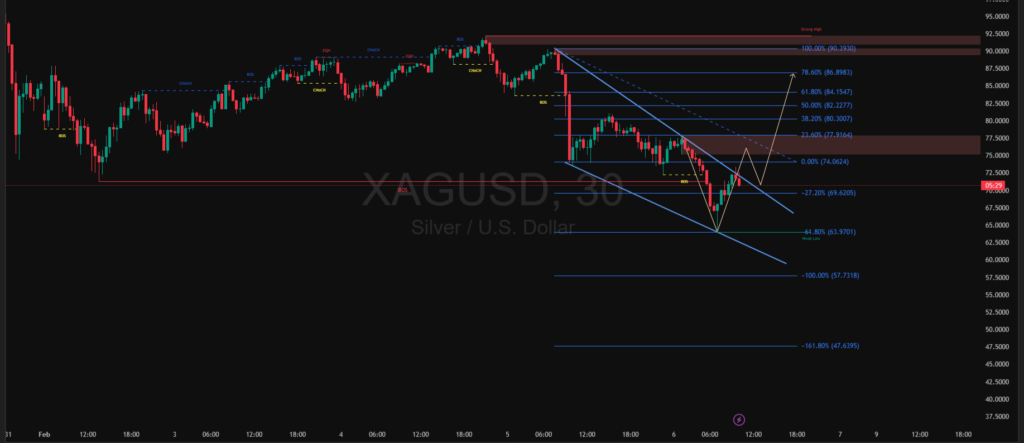 Harga perak sempat anjlok tajam hingga mendekati USD 64 per ounce sebelum kembali pulih ke atas area USD 70, mencerminkan tingginya volatilitas pasar global. Tekanan kuat ini dipicu aksi deleveraging besar-besaran yang membuat logam putih kehilangan lebih dari empat puluh persen nilainya dari puncak akhir Januari, sekaligus menghapus seluruh kenaikan sepanjang tahun.