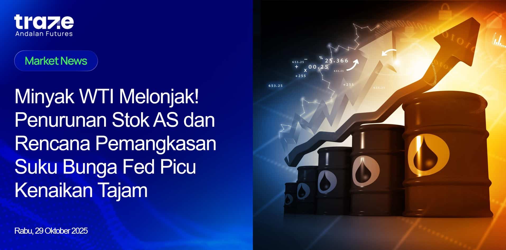 Pelaku pasar kini menantikan keputusan suku bunga Fed yang diprediksi akan dipangkas 25 basis poin ke kisaran 3,75%–4,0%. Langkah ini menjadi pemotongan kedua tahun ini dan berpotensi menekan nilai Dolar AS, sehingga membuat harga minyak lebih menarik bagi pembeli luar negeri. Meski demikian, rencana OPEC+ untuk menambah produksi sekitar 137.000 barel per hari pada Desember mendatang dapat membatasi kenaikan harga WTI lebih lanjut.