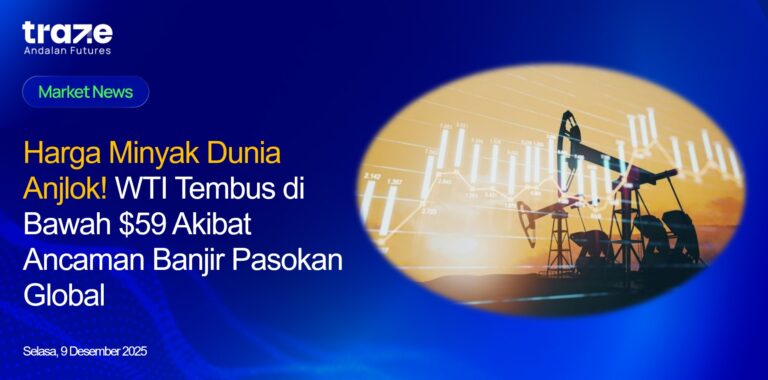Harga minyak mentah WTI bergerak di bawah $59 per barel pada Selasa (09/12) setelah turun 2% pada sesi sebelumnya. Pelemahan ini terjadi