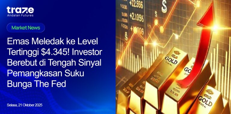 Harga emas melonjak lebih dari 2% pada Senin, menembus level di atas $4.345 per ons, yang menjadi rekor tertinggi baru. Kenaikan tajam