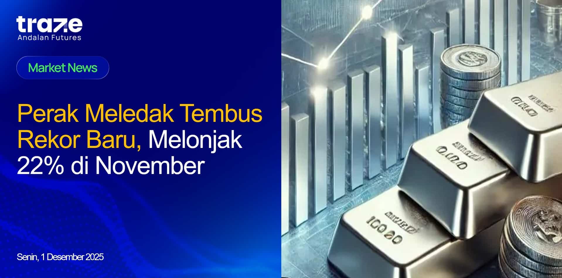 Harga perak melonjak lebih dari 1% dan menembus $57 per ounce pada Senin (01/12), mencetak rekor baru di tengah kekhawatiran pasokan serta ekspektasi kuat pemangkasan suku bunga AS. Harga spot bahkan mencapai $57,29, melampaui puncak sebelumnya setelah perdagangan di Chicago Mercantile Exchange terganggu oleh masalah pusat data. Lonjakan ini memperpanjang reli yang membuat perak naik 22% sepanjang November dan sudah melonjak 100% sepanjang 2025.