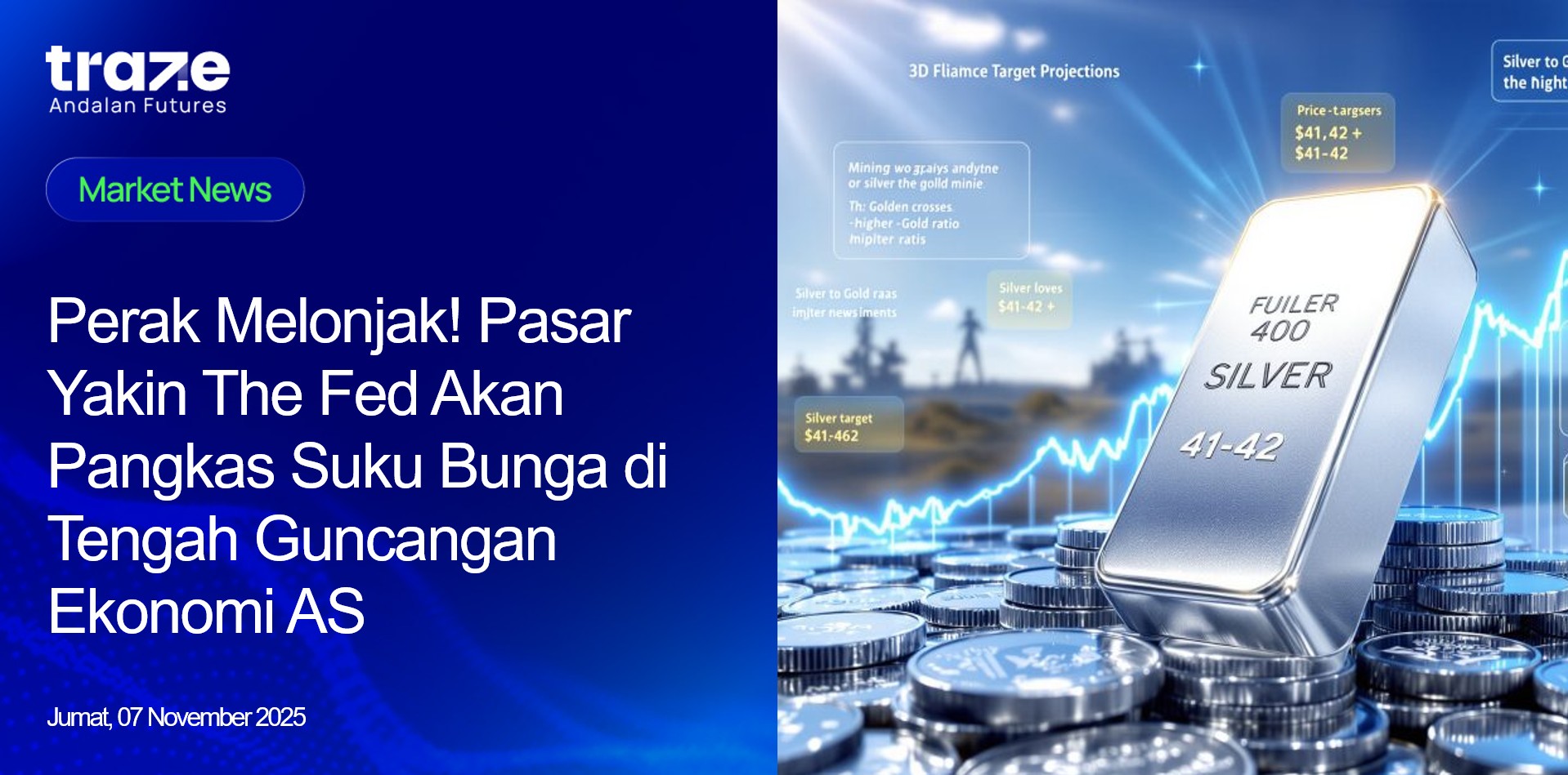 Harga perak menguat ke sekitar $48,4 per ons pada Jumat (07/11), memperpanjang reli sebelumnya seiring meningkatnya harapan terhadap pemangkasan suku bunga oleh Federal Reserve. Data tenaga kerja AS menunjukkan hilangnya 153.000 pekerjaan pada Oktober, tertinggi dalam 22 tahun terakhir, akibat efisiensi biaya dan penerapan kecerdasan buatan. Kondisi ini mendorong pasar memperkirakan peluang pemangkasan suku bunga sebesar 25 basis poin pada Desember meningkat hingga 70%.