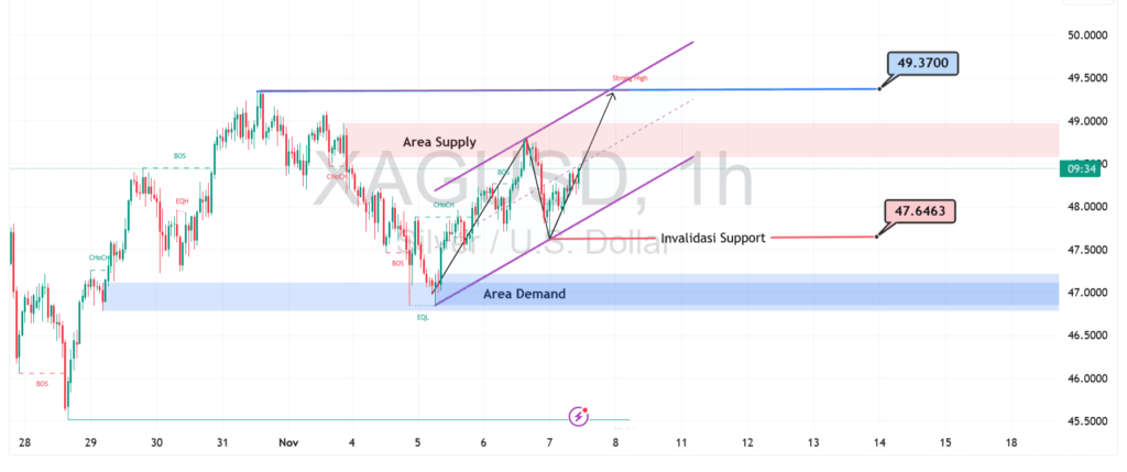 Selama harga bertahan di atas support sekitar $47.64, peluang kenaikan tetap terbuka. Namun, penembusan di bawah level ini bisa memicu koreksi menuju area demand di bawahnya.