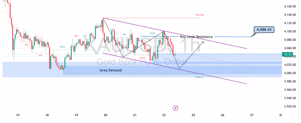 Selama Strong Low bertahan, peluang rebound menuju Key Level Resistance 4.088 masih terbuka. Penembusan bersih pada area tersebut dapat mengubah momentum menjadi bullish jangka pendek.