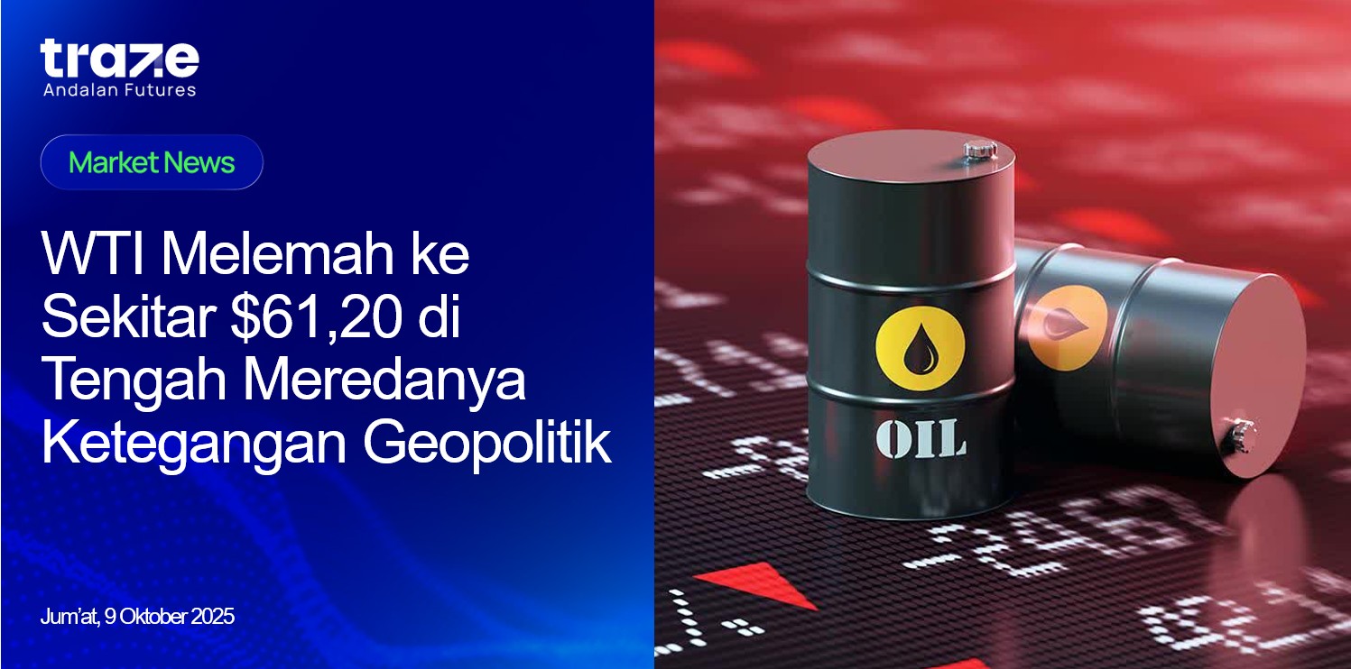 Harga minyak mentah West Texas Intermediate (WTI) diperdagangkan di kisaran $61,20 per barel pada sesi awal Asia, Jumat (10/10). Tekanan jual terjadi setelah ketegangan geopolitik di Timur Tengah mulai mereda, sehingga menurunkan premi risiko pasar energi. Pelaku pasar kini mengalihkan fokus pada perkembangan penutupan sebagian pemerintahan Amerika Serikat dan dampaknya terhadap perekonomian domestik.