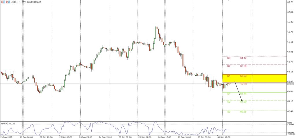 Indikator teknis menunjukkan ruang koreksi masih cukup besar, dengan sentimen global yang dibayangi kekhawatiran pasokan dan kebijakan OPEC+. Selama harga belum mampu menembus resistance di $62,93, outlook minyak WTI cenderung tetap negatif dengan potensi penurunan lebih lanjut menuju $61,20.