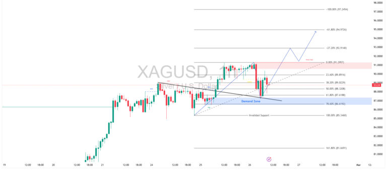 Pergerakan XAGUSD menunjukkan fase konsolidasi setelah reli tajam sebelumnya, dengan harga kini bergerak di sekitar area 89. Struktur masih mencerminkan kecenderungan naik
