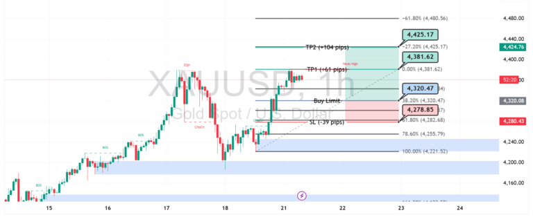 Harga emas (XAU/USD) kembali menunjukkan kekuatan setelah sempat terkoreksi, dengan pergerakan saat ini mengarah ke kisaran $4.381 dan potensi lanjutan menuju $4.425.