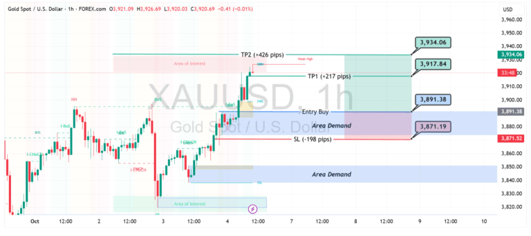 Harga emas (XAU/USD) terlihat bergerak dalam fase konsolidasi setelah sempat menyentuh area tertinggi di sekitar $3.867. Tekanan jual masih membayangi, namun peluang
