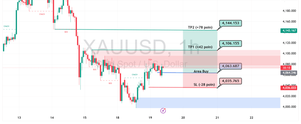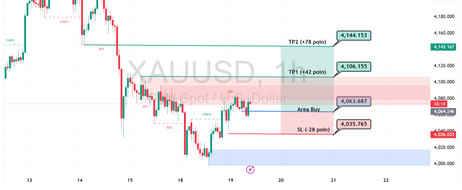 Selama harga mampu bertahan di atas area beli 4.063, potensi kenaikan menuju target 4.106 tetap terbuka. Jika momentum terus menguat, kenaikan dapat berlanjut hingga 4.144 yang menjadi resistance utama sekaligus target lanjutan.